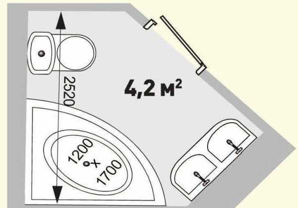 Нестандартная планировка, на схеме душевой уголок и ванна