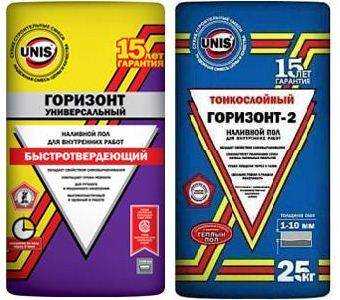 Ярким представителем подобных смесей является наливной пол Юнис Горизонт универсальный.