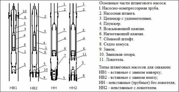 По своему конструктивному исполнению и принципу действия глубинные насосы для скважины делятся на: