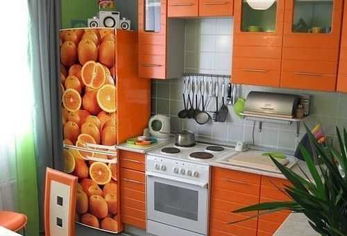 Современные кухни давно ушли от скучных оттенков и фактур. При этом гармонично вписать в дизайн однотипную бытовую технику стандартных расцветок не всегда удаётся. Если мелкие приборы можно встроить в мебель или убрать в шкаф, то стандартный холодильник почти невозможно спрятать без значительной потери пространства. Дизайнерская аэрография или индивидуальный заказ у производителя стоят дорого. Уместный компромисс между ценой и индивидуальностью – самоклеящаяся плёнка.