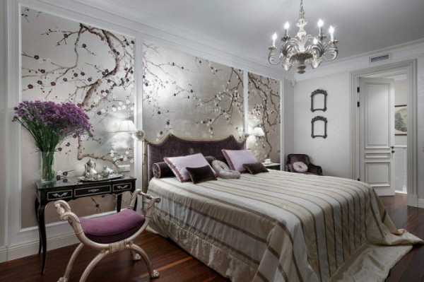 Отделка спальни обоями является классическим вариантом, который может быть реализован в интерьере разных стилей. Преимуществами этого приема являются: