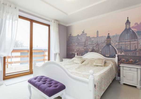 Суть в том, что любое изображение улицы, природных пейзажей, панорамы города, расширят пространство любого помещения, создавая ощущение простора. Если у вас маленькая спальня, почему бы и вам не создать подобный интерьер?