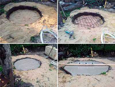 На фундаменте делается разметка, то есть рисуется окружность, которая определит внешние границы стенок нижней части куполообразной камеры.