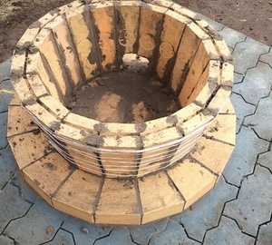 Так как внутренняя поверхность тандыра должна быть идеально гладкой, ребра той стороны кирпичей, которые будут повернуты вовнутрь, срезаются шлифмашинкой. По-другому стенки купола можно сделать гладкими, нанеся на них утолщенный слой глиняной смеси и тщательно выровняв с постоянным смачиванием водой.