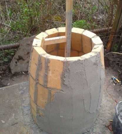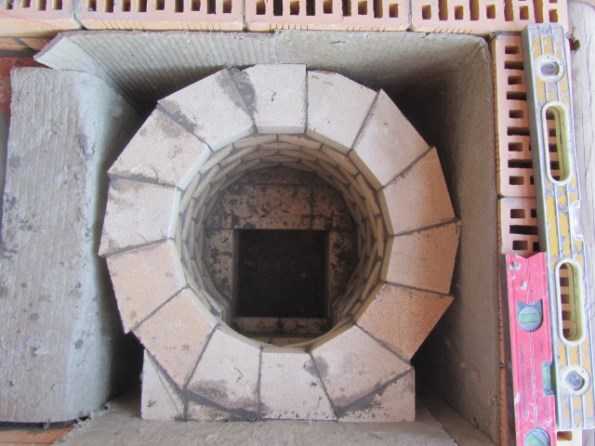 Следующим этапом весь верх, кроме серединного круглого отверстия, перекрывается кирпичной кладкой.