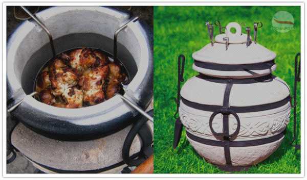 Использование тандыра для варки Используя довольно объемную посуду или сварив специальную решетку на отверстие, можно с успехом готовить на тандыре настоящий узбекский плов или шашлык, подвесив шампуры вниз. Их не потребуется переворачивать во время жарки. Уверяем вас, прожарка у них будет идеальная.