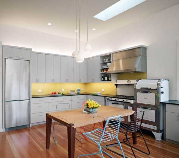 Вполне допускается комбинация всех методов для того, чтобы создать многоуровневое освещение, когда каждый участок кухни освещается своей группой приборов. Это не только экономичнее, но и намного эффектнее.