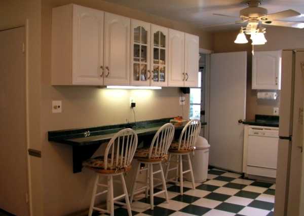 Кстати, стоит добавить, что столик как продолжение кухонной мебели может располагаться не только в боковой части, но и даже посередине. Такой ход довольно оригинален и поможет украсить вашу кухню.