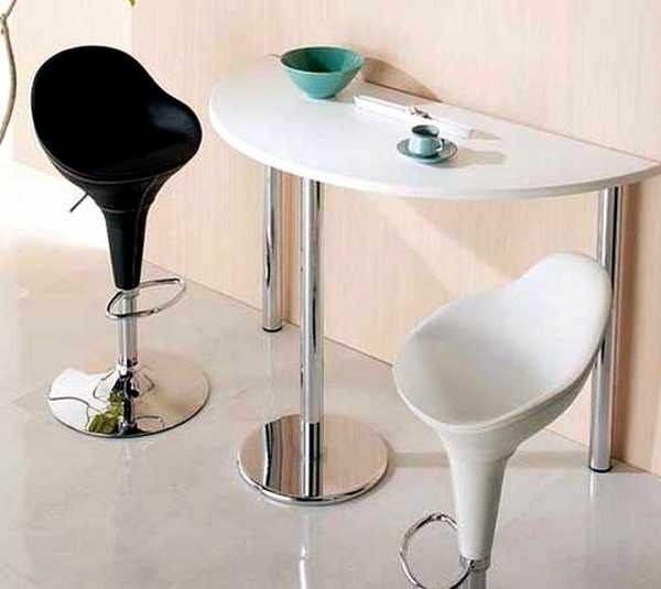 Для маленькой кухни предусмотрены миниатюрные столики, лишенные опорной ножки или снабженные только одной подобной деталью. Такие конструкции желательно не перегружать.
