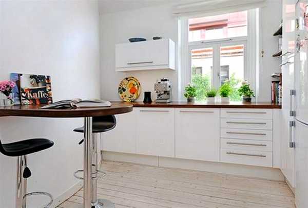 К сожалению, довольно часто встречается ситуация, когда для стола места не хватает. Однако, при желании можно отойти от обычных стереотипов оформления кухни и найти оригинальные и интересные решения, с помощью которых вы сможете сделать пребывание на кухне не только красивым, но и максимально комфортным.