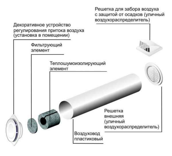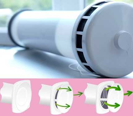 Небольшое по габаритам устройство, состоящее из регулятора воздушного потока, корпуса в виде трубы, фильтров и изоляционных приспособлений, обеспечит поставку в комнату чистого воздуха в требующемся объеме