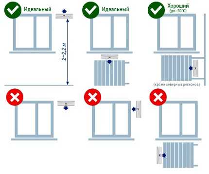 При выборе комнаты для установки стенового «приточника» следует руководствоваться следующими правилами: