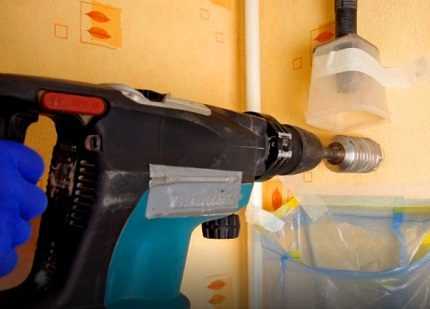 Установка приточного клапана в стену может быть произведена своими руками. Для установки небольшой модели под окном можно обойтись перфоратором. В случае монтажа большой модели в стене у окна, в зависимости от материала стены, предпочтительней использовать алмазное бурение, так как перфоратор может оказаться малоэффективен.