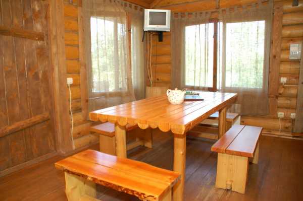 Совет! Использовать следует исключительно деревянную простую мебель. Мягкая мебель, обтянутая кожей или ткань, для таких помещений не годится, поскольку постоянная влажность крайне негативно скажется на внешнем виде такой обивки.