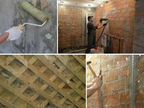 С поверхности требуется удалить пыль, грязь, остатки краски и масляные пятна. Также необходимо увлажнить стену водой, используя для этого малярную кисть, валик или распылитель. Лучше всего покрыть плоскость слоем специальной грунтовки. Дальнейшие действия зависят от объема планируемых работ.