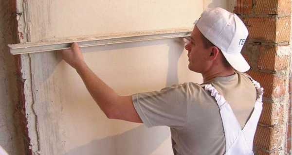 Делают маяки из того же раствора, что и штукатурка, или из алюминиевых профилей или из деревянных планок одной толщины. Их выравнивают по уровню клея на цементно известковую штукатурку. Чем выше сторона профиля, тем толще будет штукатурка.