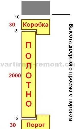Итого: 200 см+1 см+2,5 см+1,5 см=205 см. Если в конструкции предусмотрен порог, следует еще раз приплюсовать толщину короба.