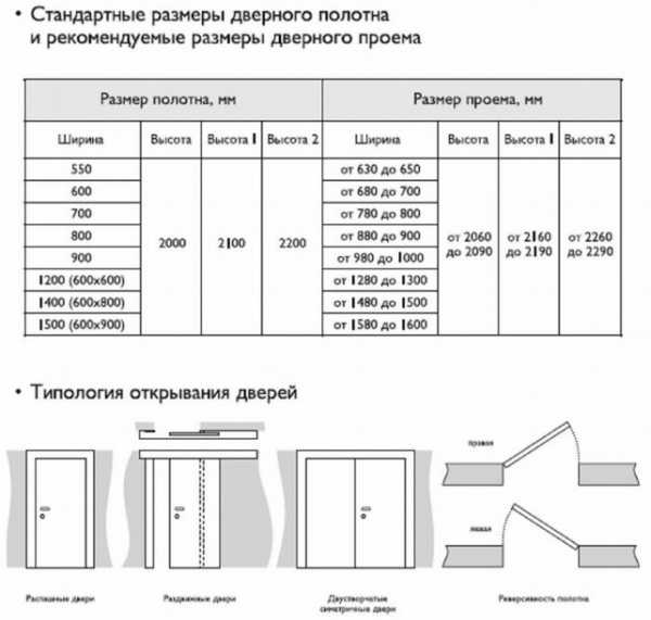 Таблица стандартных размеров проемов