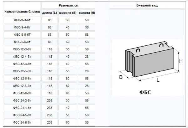 Бетонные блоки ФБС размеры, вес и маркировка.