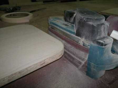 Подгоняем до чистого размера радиусные углы ленточной шлифмашиной.