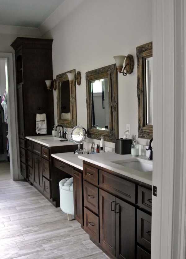 Счастливым обладателям просторных ванных комнат повезло и в возможности расставить тут дополнительную мебель.