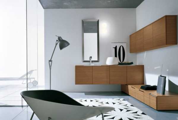 Если в ванной комнате установлен пол с подогревом, то такая мебель как раз впишется в такой дизайн.