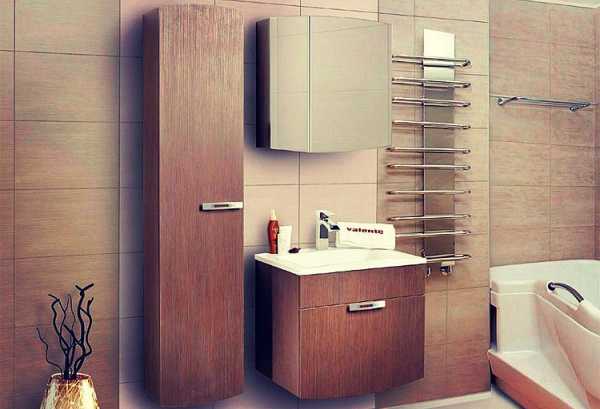 Совет: нельзя устанавливать шкафы без ножек на отапливаемом полу. Их отодвигают к месту, где минимум тепла или вообще такую модель не ставят в ванной.