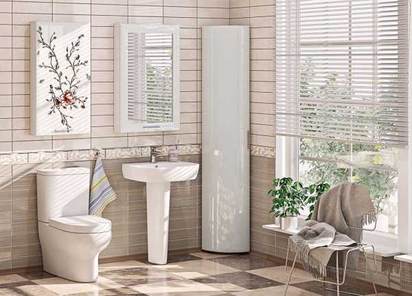 Или же это может быть угловой пенал. Такие шкафы очень компактно и органично вписываются как в большие ванные, так и в миниатюрные, где практически нет места для мебели.