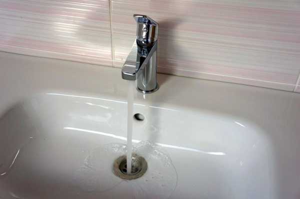 Струя воды попадает почти точно в центр сливного отверстия раковины: