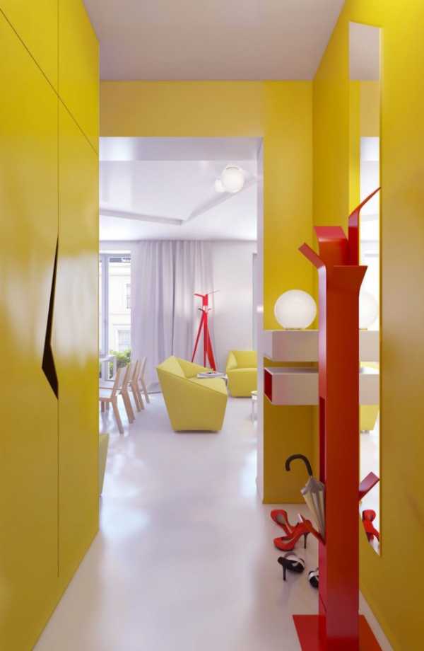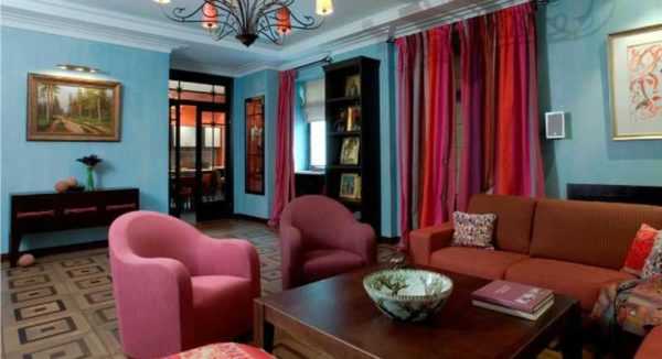 - Яркие оттенки стен помогут скорректировать слишком вытянутую комнату, ведь темные тона приближают предметы.
