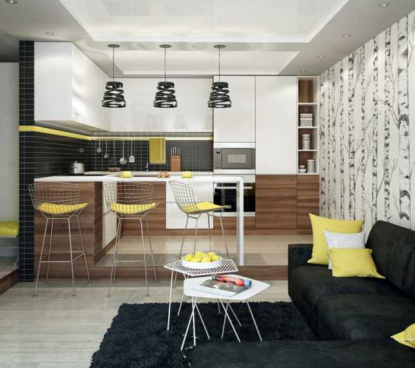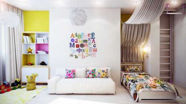 | Контрастное сочетание | Стены делают ярких тонов, пол темным, а потолок светлым. Можно визуально изменить размеры комнаты, скрыть существующие недостатки и выделить преимущества. |