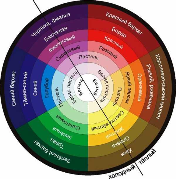 Все это зависит от, так называемой, «температуры» цветов, из которых состоит палитра. А все цвета делятся на два типа: теплые и холодные оттенки. Увидеть это деление особенно явно поможет обычный цветовой круг: одна его половина состоит только из теплой гаммы, а вторая включает все тона холодного спектра.