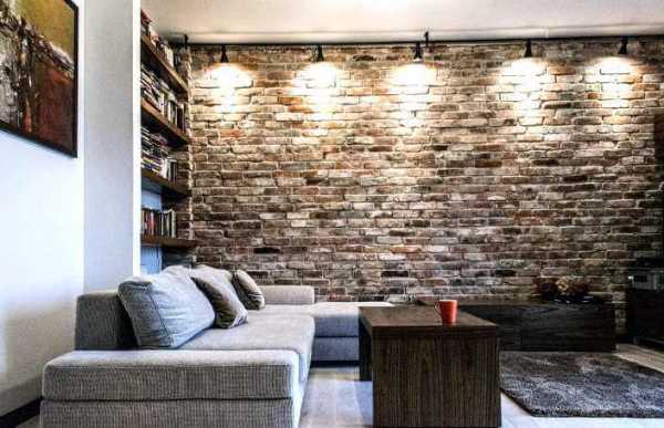 Серые кирпичные стены в гостиной