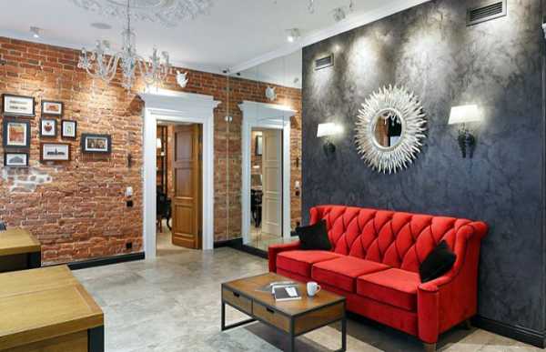 Это особое помещение в квартире, требующее тщательно подхода к оформлению – ведь именно здесь будут проводиться праздничные мероприятия в кругу друзей и близких, семейные посиделки. В новомодных интерьерах нередко можно встретить оформление гостиных с акцентом на кирпичных стенах. Стоит отметить, что кладка сама по себе является прекрасным декоративным элементом, не требующим дополнительных украшений. При желании на кирпичной стене можно оформить галерею семейных фотографий, демонстрацию художественных произведений или постеров.