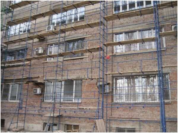 - Усиленные леса могут использоваться для возведения кирпичной и каменной кладки стен.