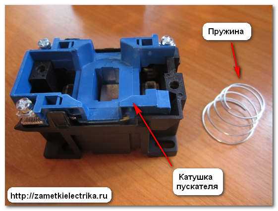 Основа пускателя — магнитопровод и катушка индуктивности. Магнитопровод состоит из двух частей — подвижной и неподвижной. Выполнены они в виде букв «Ш» установленные «ногами» друг к другу.