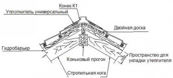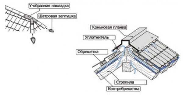 Обычное движение воздуха от карниза к коньку, происходящее за счет нагревания материала кровли солнцем или отопительной системой дома, подразумевает свободный выход воздуха из-под конька, поэтому зазор между скатами нельзя полностью герметизировать.