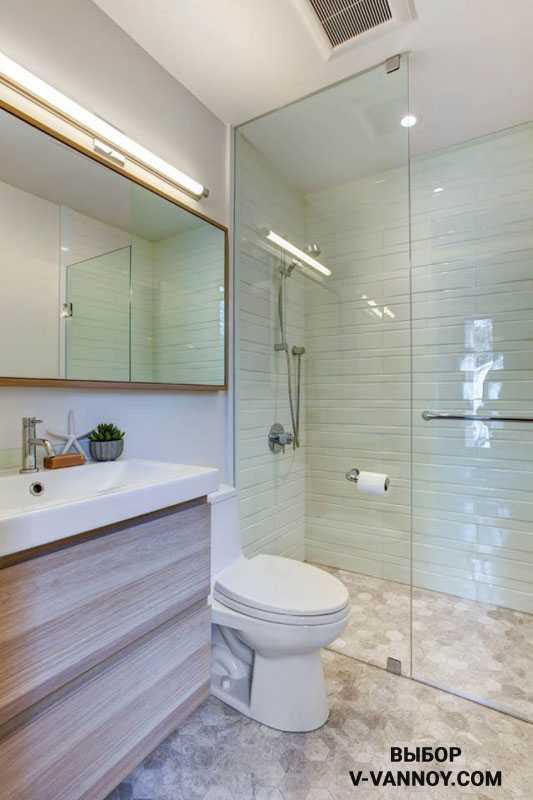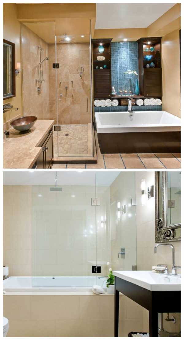 - Установка традиционной прямоугольной ванны вдоль одной стены, и душевой кабины в углу, возле противоположной стены.