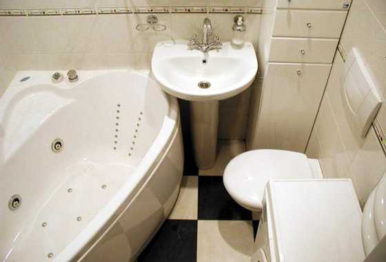 - если разместить сантехнику по углам помещения, то получится больше свободного места в центре;