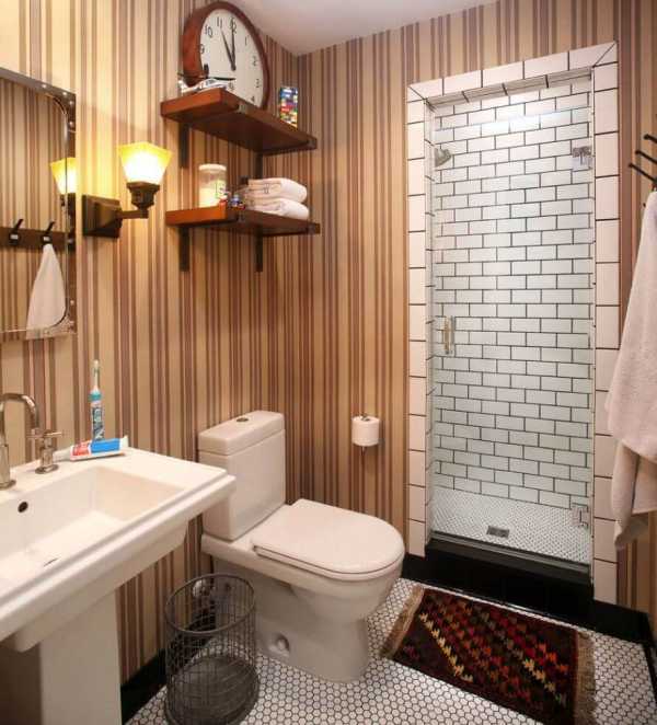 - вытянутая форма помещения позволяет расположить все по одной стене. Зачастую такие санузлы очень малы, так что разумно будет поставить душевую кабину вместо ванной.