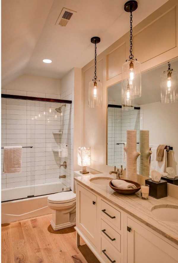 - Визуально расширяют пространство зеркала и стекло: зеркальные детали декора и шкафчики подчеркнут современную стилистику санузла.