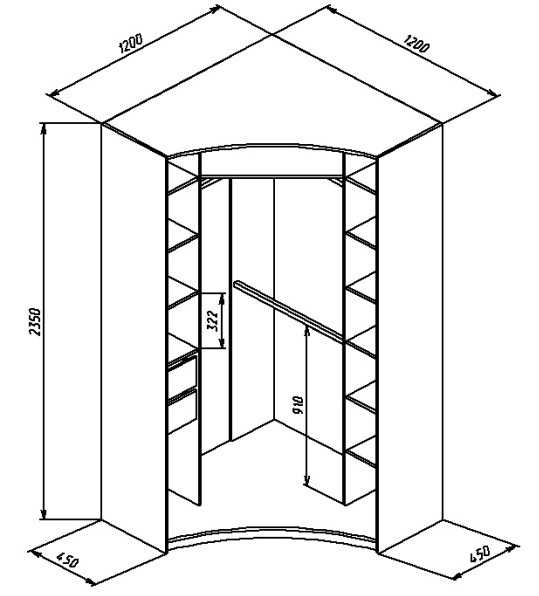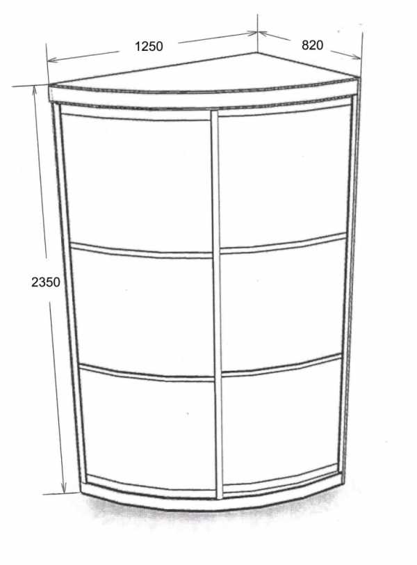 Что же касается в целом, конструкции, а также габаритов, все это зависит индивидуально от требований и пожеланий каждого заказчика. Ведь то, где и как будет установлен радиусный угловой шкаф – играет практически основополагающую роль.