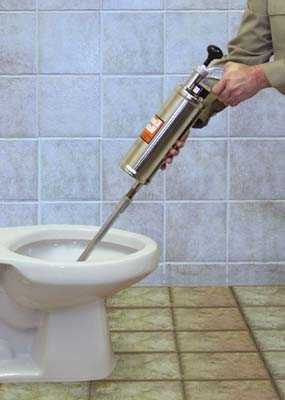 Специальный аппарат для прочистки унитазаЕсть вероятность, правда не стопроцентная, что это приведет к успеху. Если же этого не произошло, то все равно отчаиваться не стоит, а рекомендуется опробовать действие третьего способа – пневматического.
