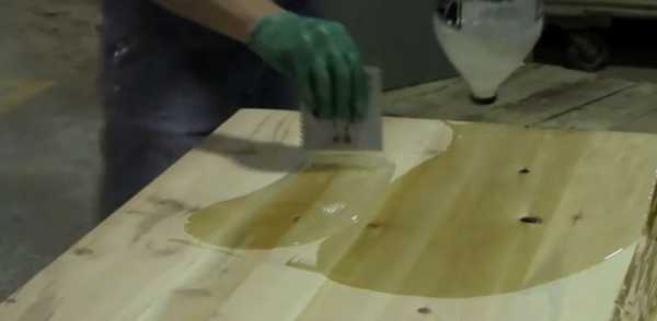 Эту смесь лучше использовать только для деревянных поверхностей, так как бетонные и цементно-песчаные покрытия становятся скользкими на ощупь, вследствие чего их потом совершенно невозможно ничем отделать. Готовится средство из воды и стекла в соотношениях 1:1.