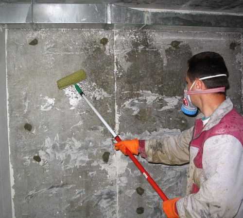 Стены из бетона либо оштукатуренные цементно-песчаным раствором таким средством лучше не мазать. Они покрываются своего рода защитной пленкой, которая очень скользкая и дальнейшая отделка в виде шпаклевки и покраски становится практически невозможной.