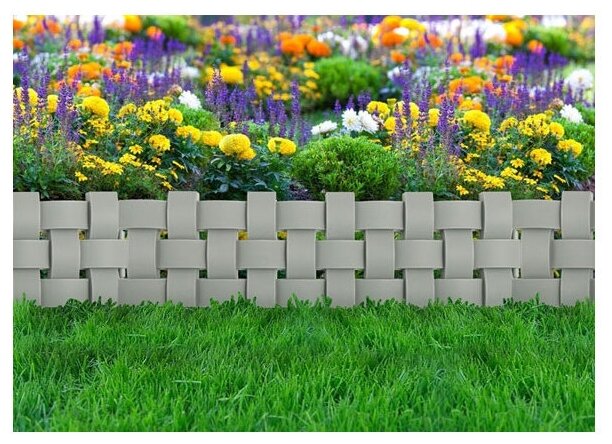 Высота таких заборов не превышает метра, прочность его невелика, так как пластик разрушается под воздействием ультрафиолета и отрицательных температур. Срок службы пластиковых заграждений можно продлить, если на зиму демонтировать забор. К положительным характеристикам причисляют легкость установки – справится с этим даже пожилой человек, возможность перенести на другое место при изменении экспозиции клумбы и яркая палитра форм и расцветок.